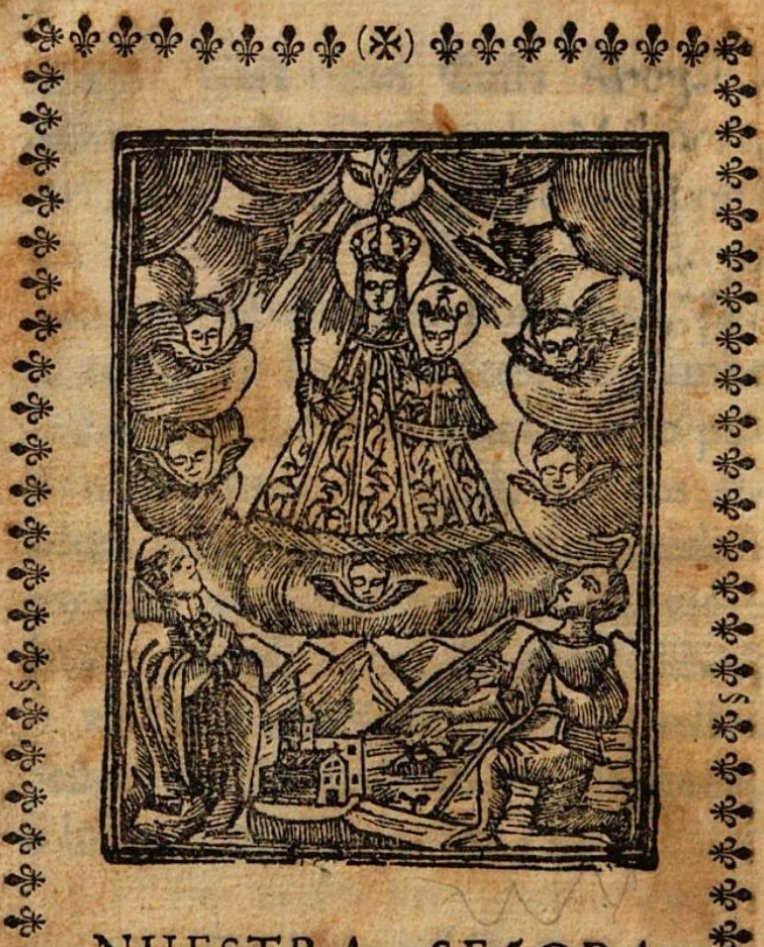 Das Titelbild von Book of Miracles (1684) illustriert die Erscheinung der Madonna